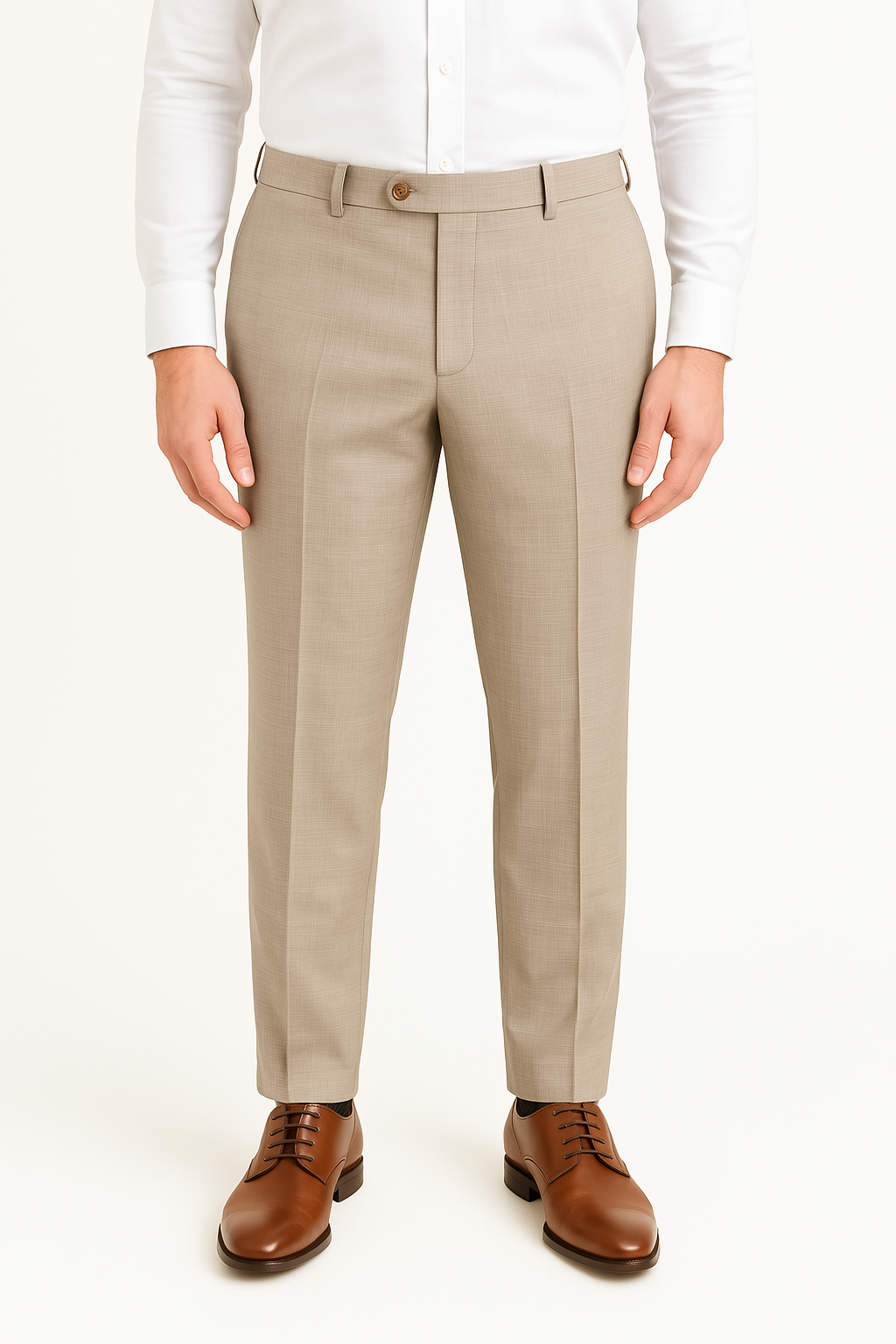 Sleek, modern fit with no pleats; ideal for slim or average builds; best for casual and formal wear.
