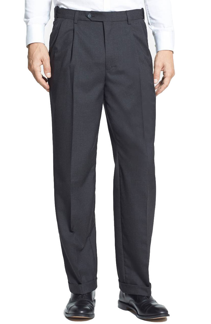 Classic style with pleats near the waistband; offers extra room and comfort; great for larger builds or traditional looks.